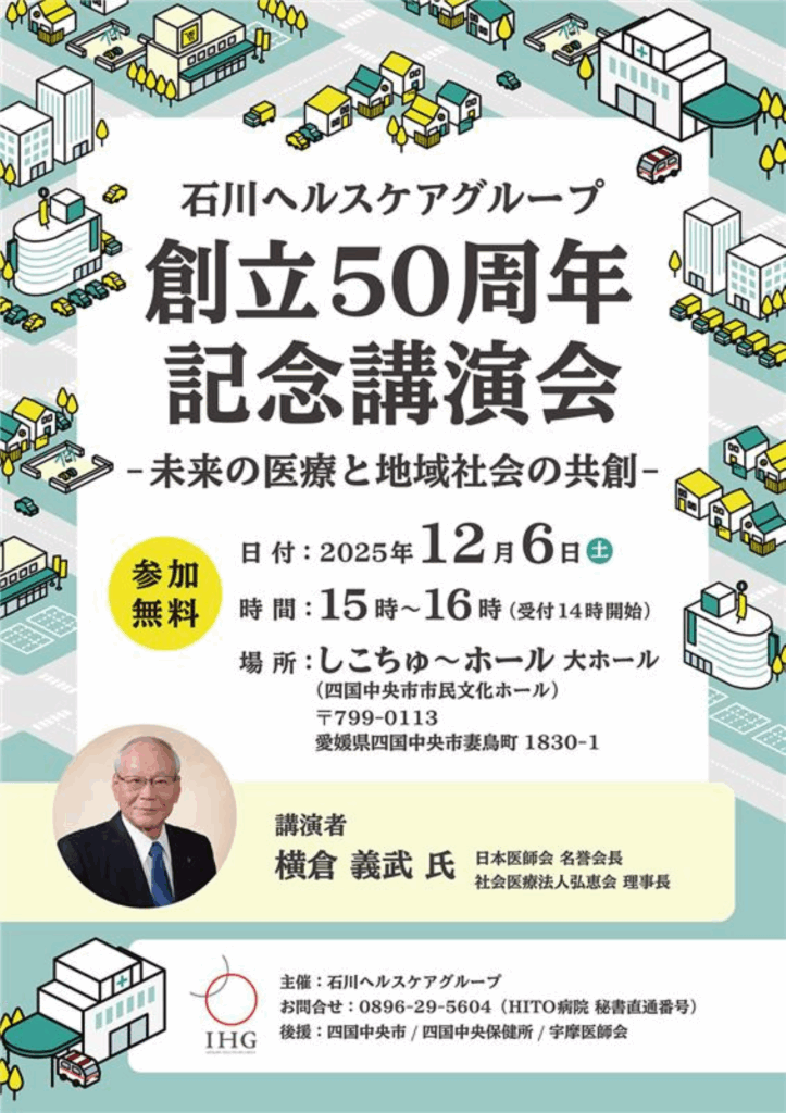 2025年12月6日、しこちゅ~ホールにて石川ヘルスケアグループ創立50周年記念講演会を開催いたします。
