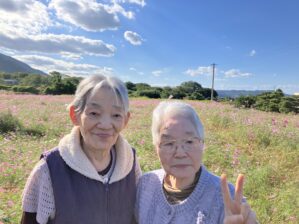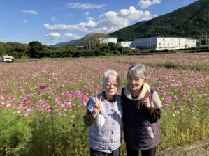 「どこか行きたいね」「外の空気が吸いたいね」──そんなグループホーム三島の杜の利用者様の声を受けて、秋空のもと、土居のコスモス園へ外出しました。