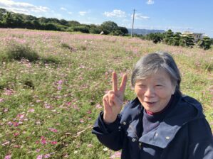 コスモス園に着くと、一面に広がる花畑を背景に写真を撮ったり、職員や利用者同士で談笑したりと、穏やかで楽しいひとときを過ごしました。