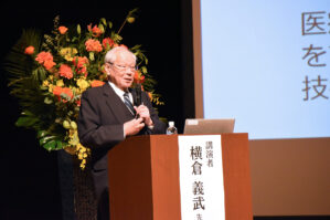 今回の講演会では、日本医師会名誉会長・社会医療法人弘恵会理事長の横倉 義武先生をお招きし、「未来の医療と地域社会の共創」というテーマでご講演いただきました。日本の医療の在り方や、日本が世界に誇るべき国民介護保険、子育てや医療を安心して受けられる仕組みを今後も維持していく重要性を再認識する機会となりました。私たち医療従事者も、人を真ん中にした医療・介護・福祉で地域の皆さまが安心して暮らせる、次世代の未来を担うグループとして精進してまいります。
