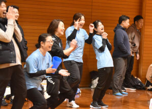 さらに今年は、健康会の利用者さん12名にもご来場いただき、職員と利用者さんが一緒に声援を送り、楽しむ姿が見られました。選手たちは全力でプレーし、観客も一体となって応援するなど、会場は熱気と笑顔にあふれ、決勝戦では点が決まる度に歓声が上がり、喜びを分かち合う光景が印象的でした。